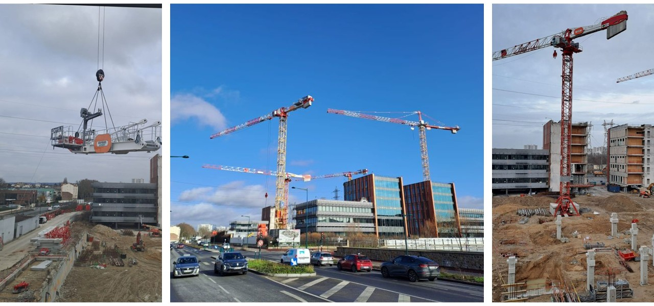 Après quelques mois de curage soigné en vue du réemploi et de démolition, le projet « Sky Center » de Gennevilliers passe à une nouvelle étape marquée par le montage des 4 grues et la mise en place des premiers poteaux.